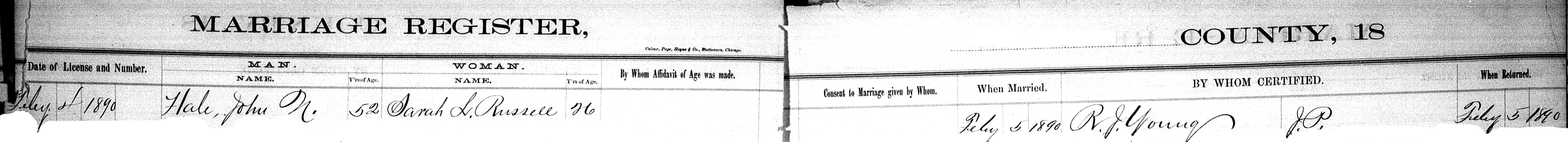 John Hale & Sarah Russell Marriage Register (short)Type: