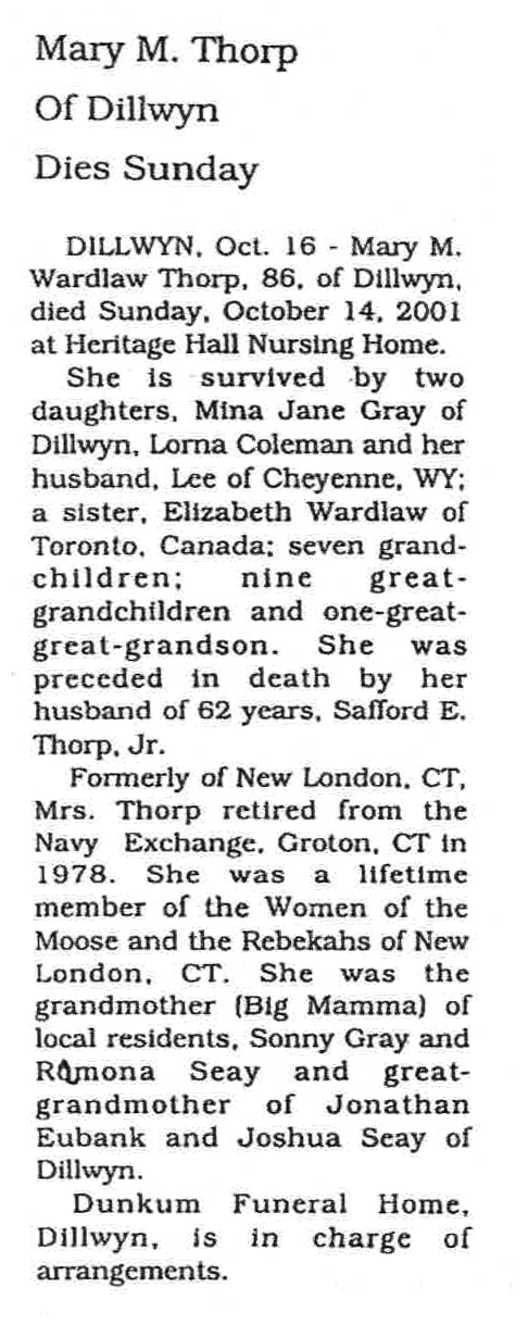 Mary M. Thorp ObituaryType: