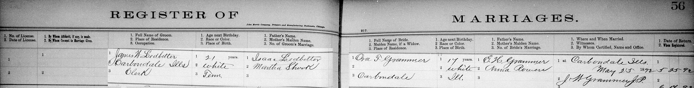 James Ledbetter & Ora Grammer Marriage RegisterType: