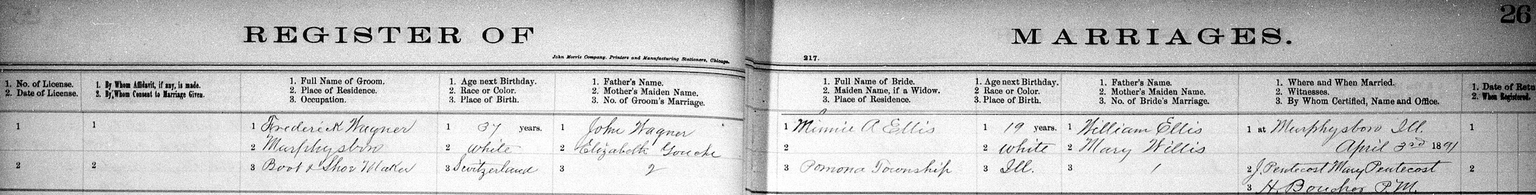 Frederick Wagner & Minnie Ellis Marriage RegisterType: