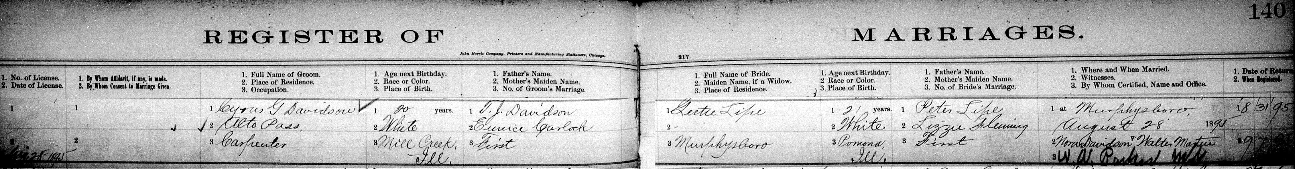 Cyrus Davidson & Gertie Lipe Register of MarriageType:
