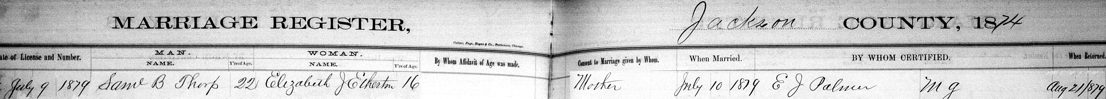 Samuel Thorp & Elizabeth Etherton Marriage RegisterType: