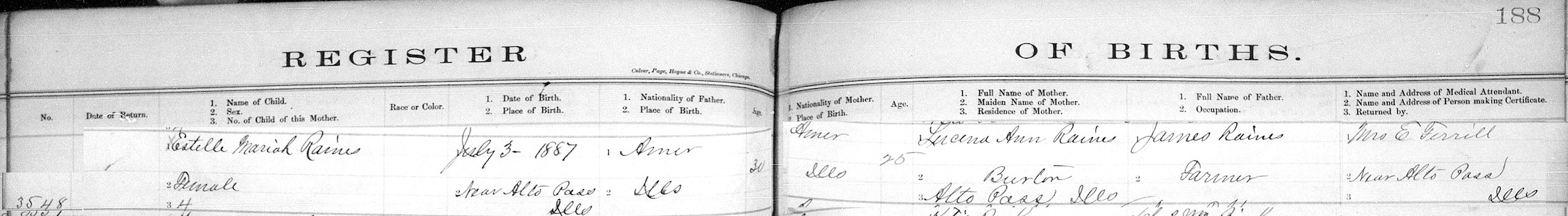 Estelle Mariah Raines Register of BirthType: