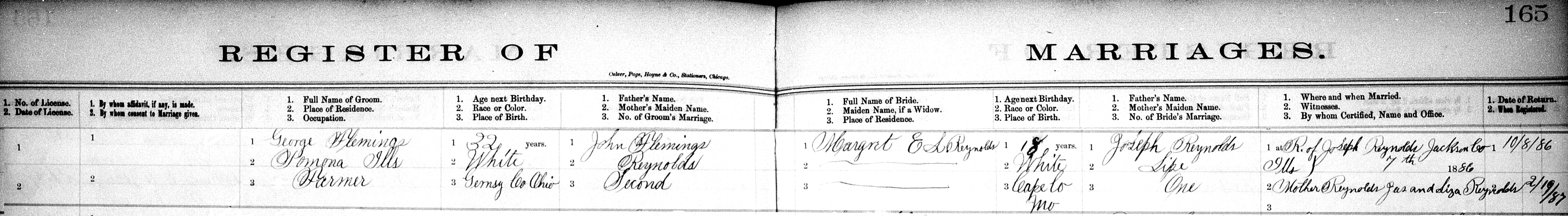 George Flemming & Margaret Reynolds Marriage RegisterType: