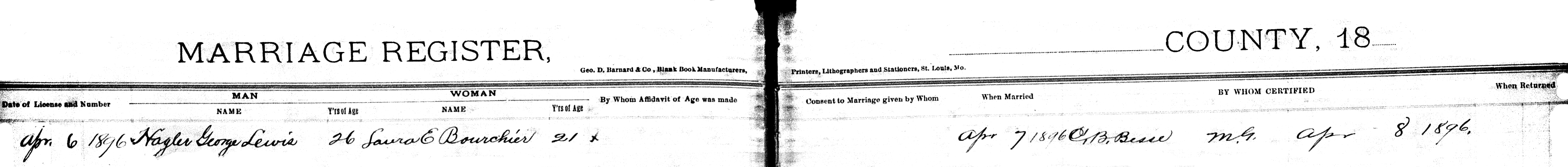 Lewis Hagler & Laura Bourchier Marriage RegisterType: