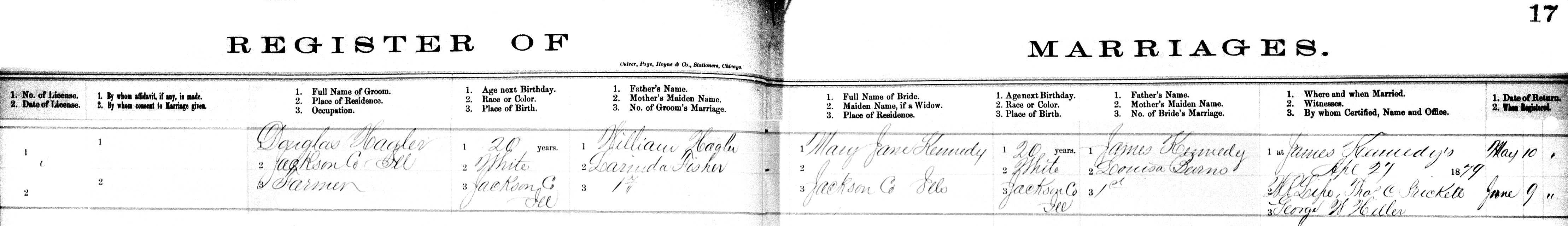 Douglas Hagler & Mary Kennedy Register of MarriageType: