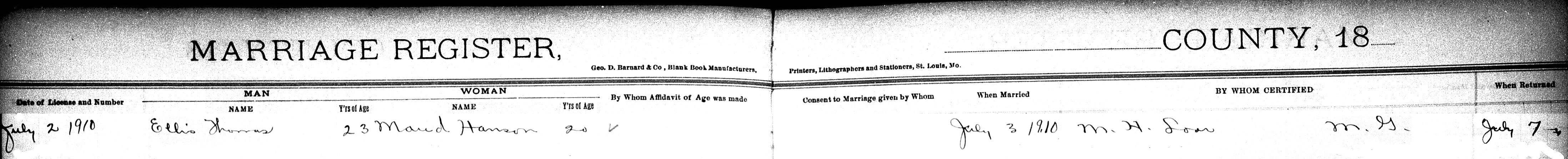 Thomas Ellis & Maud Hanson Marriage RegisterType: