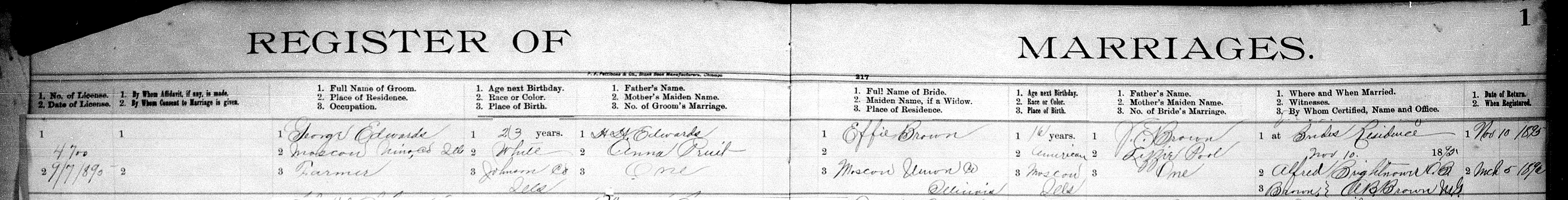 George Edwards & Effie Brown Register of MarriageType: