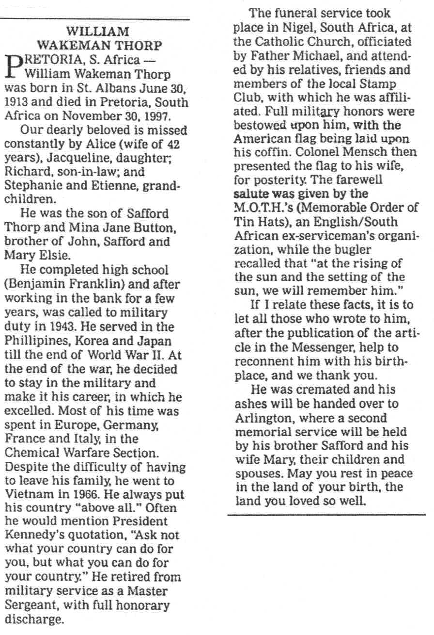 William Wakeman Thorp ObituaryType: